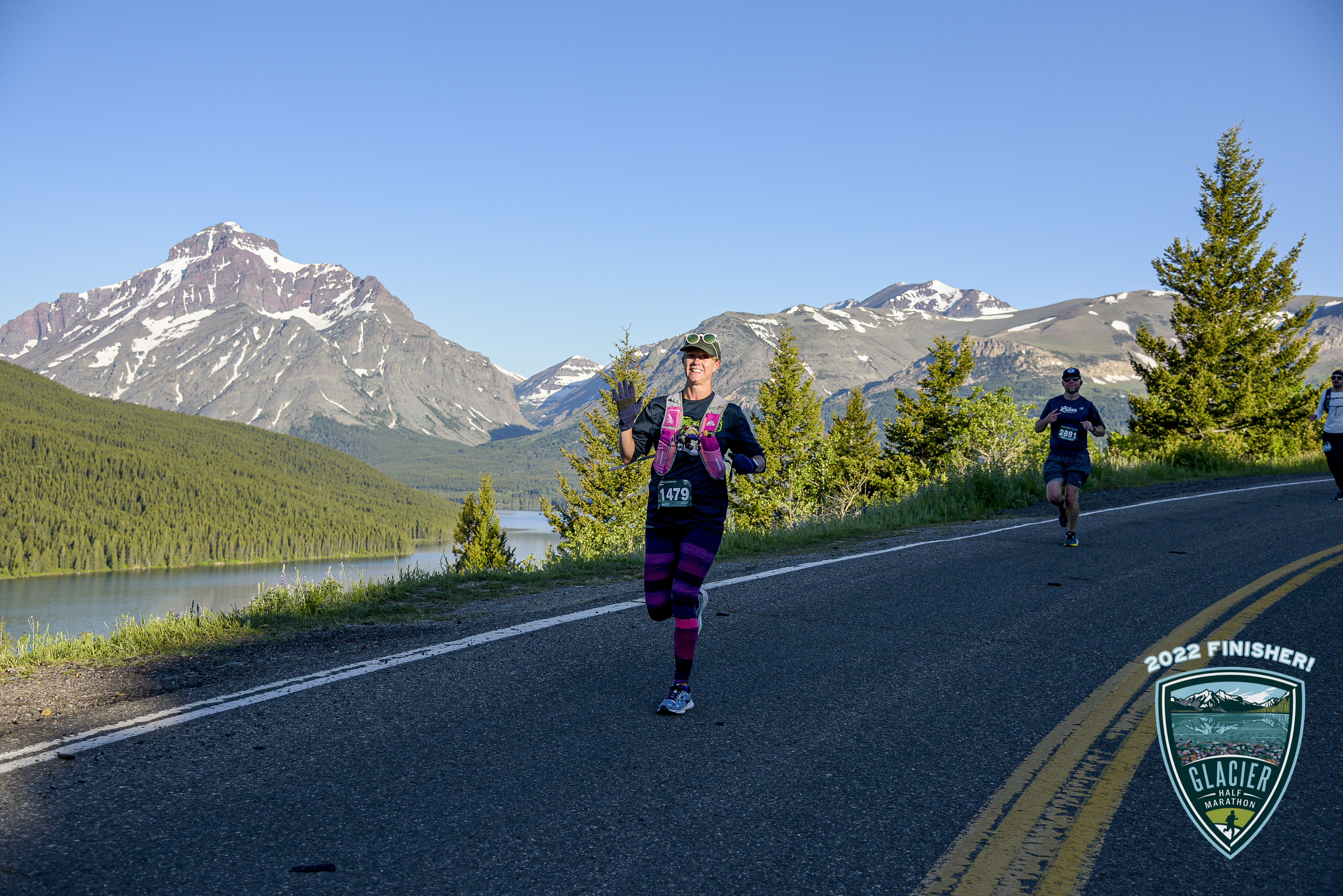 My friend and I found an Airbnb in East Glacier Park Village, which was less than 5 minutes from the race's finish line. It was also a perfectly-centered location to travel to West Glacier for a rafting trip one day and then explore East Glacier trails the next. It was a 15-minute drive from the shuttle in Browning, MT, that took all of the runners to the start line between 4 and 5 a.m. that morning. The race began at 6 a.m. It was 38 degrees before the sun came up, so I had on all my layers; and they also had white garbage bags I could leave my big cozy sweatshirt in (with my bib number on it) that they brought to the finish line. Worked seamlessly. The race started in several different waves. I signed up for the first, the blue, bc the estimated finish time was by 1 hour and 55 minutes. I think there were 300-something people in that wave. Altogether, the race had 1,500 runners. Wow.